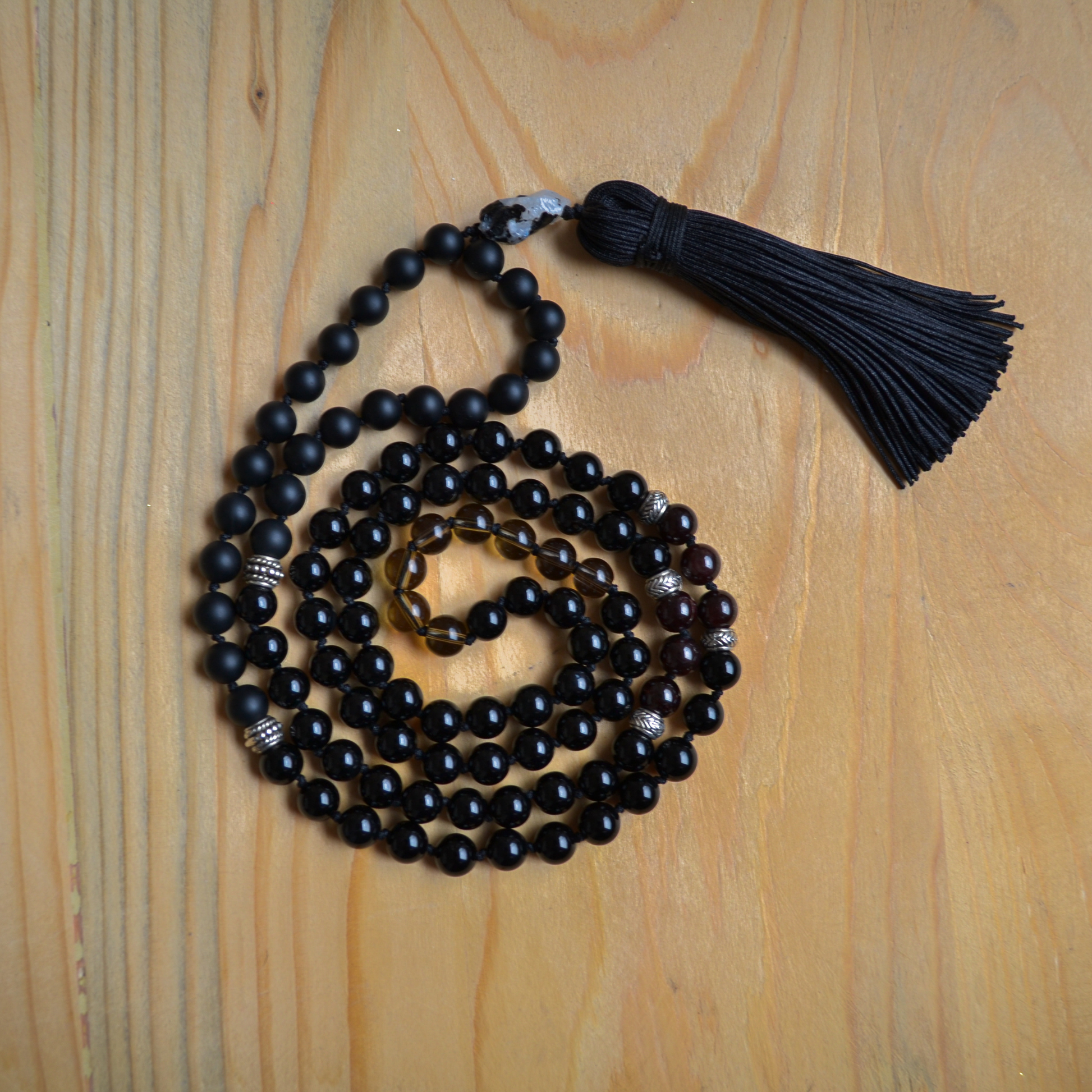 Esta japa mala ha sido creada para acompañarte en tus viajes interiores, especialmente en momentos de introspección, cierre de ciclos o búsqueda de dirección clara. Su energía te ayuda a detenerte, mirar con atención y escuchar la voz de tu sabiduría profunda.